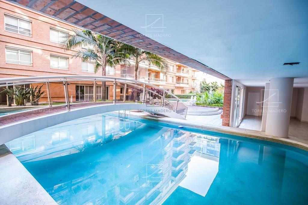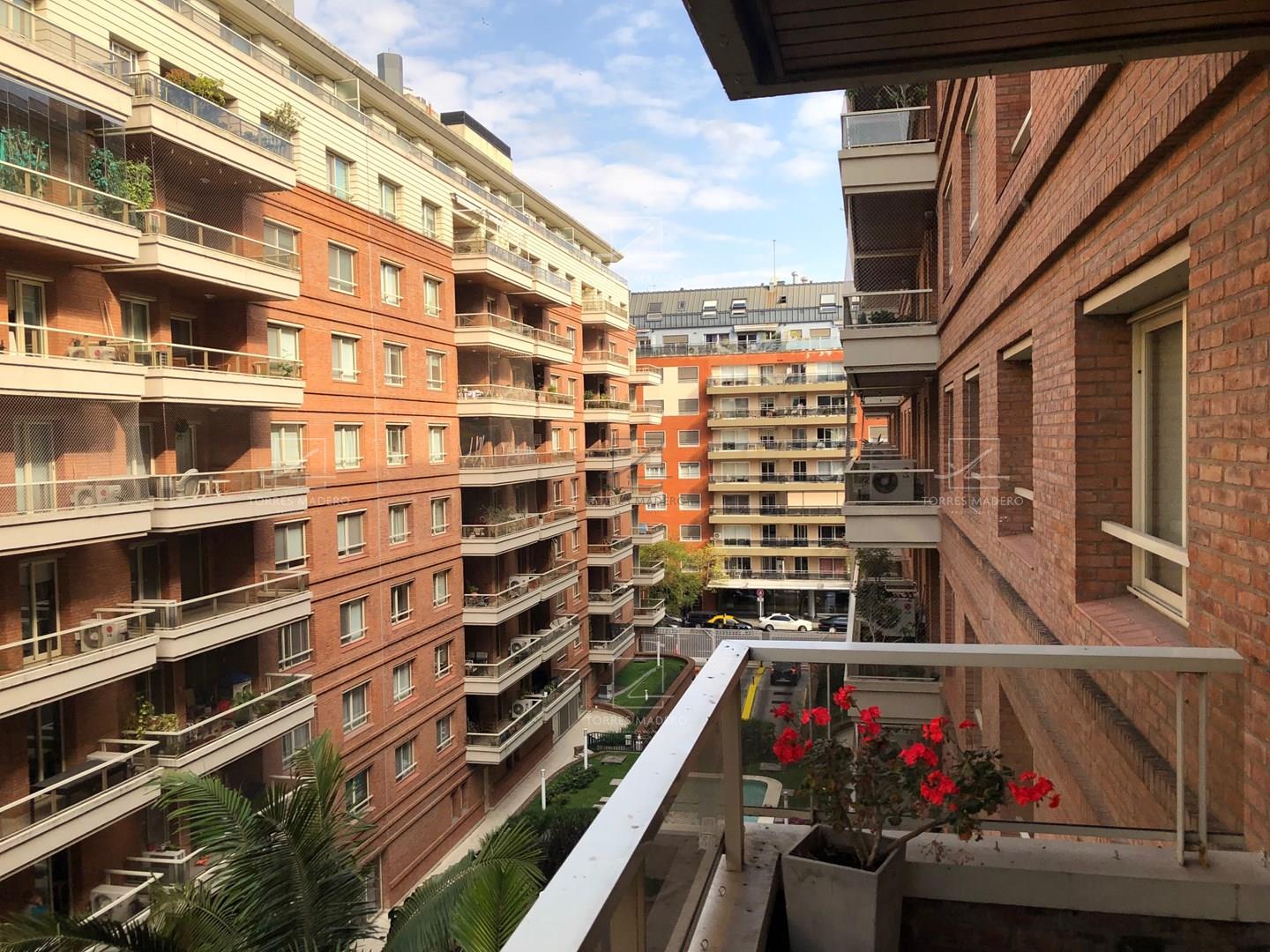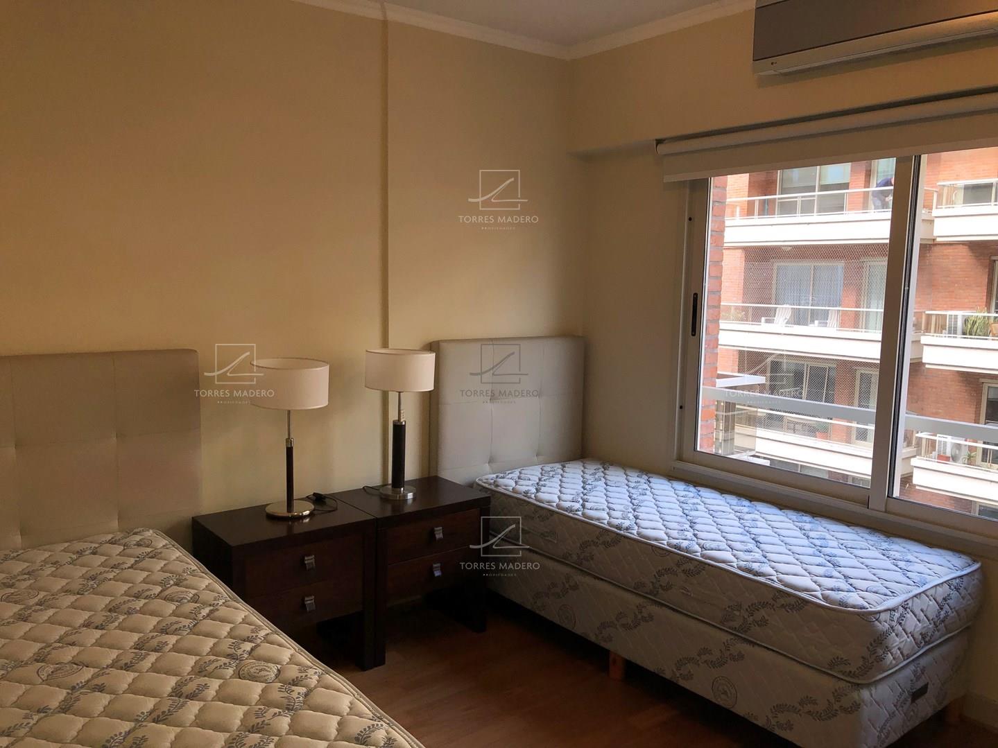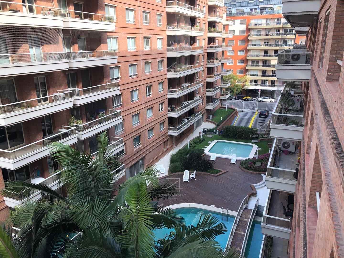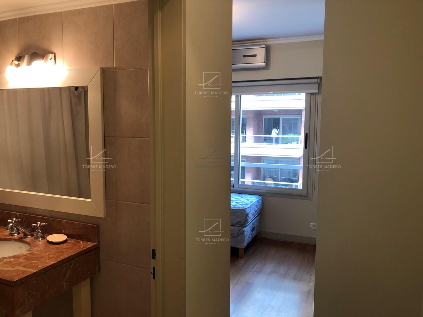 EXCELENTE DEPARTAMENTO EN ALQUILER AMOBLADO DE 2 DORMITORIOS EN SUITE. Impecable 3 ambientes totalmente amoblado, Palier semiprivado y entrada de servicio. 2 habitaciones en suite con baños completos. Living comedor con Toilete de recepción. Cocina con comedor diario y lavadero incluido. Doble mesada. Gran balcón al frente con orientación Este. Tiene 1 cochera fija. Bayres Madero ofrece calidez y confort en sus espacios centrales, brindando un gran pulmón de manzana con 3 piscinas y solárium para disfrutar en familia. El Edificio esta ubicado en el corazón de Puerto Madero, rodeado de locales comerciales y naturaleza, a 1 cuadra de los diques, lo convierte en un espacio ideal para poder vivir. Solidez en su construcción, sus departamentos poseen pisos de madera, ventanales doble vidriado y equipos LG Multi Split. Plazo de Locación 2 años.* Se requiere identificación para Ingresar *