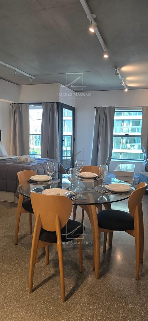 Impactante departamento de 1 Ambientes en Alquiler en Puerto Madero totalmente equipado y amoblado con muy gusto y excelente nivel. Importante edificio frente al Paseo del Bajo y con vistas únicas de Buenos Aires, con los mejores centros de estudio en un radio de 2 kilómetros. A diez cuadras de la Reserva Ecológica de Puerto Madero, Cerca de nuestra historia, a 750 metros del Puente de la Mujer y bellas vistas al Río de la Plata y a la Ciudad. Opcional cochera: USS 100. Amenities exclusivos: Coffee Resto Bar, Gallery Art, Gym, Yoga, Running Track, Coworking Área, Library, Game Lounge, Laundry Área, Swimming Pool, Rooftop. La torre HUERGO 475, diseñada por el estudio Adamo Faiden, responde con su morfología a las características del entorno. Mediante una serie de desplazamientos horizontales, logra capturar las mejores vistas del río y la ciudad. * Se requiere identificación para Ingresar al edificio* * Todas las medidas enunciadas son meramente orientativas, las medidas exactas serán las que se expresen en el respectivo título de propiedad de cada inmueble. Todas las fotos, imágenes y videos son meramente ilustrativos y no contractuales. Los precios enunciados son meramente orientativos y no contractuales.