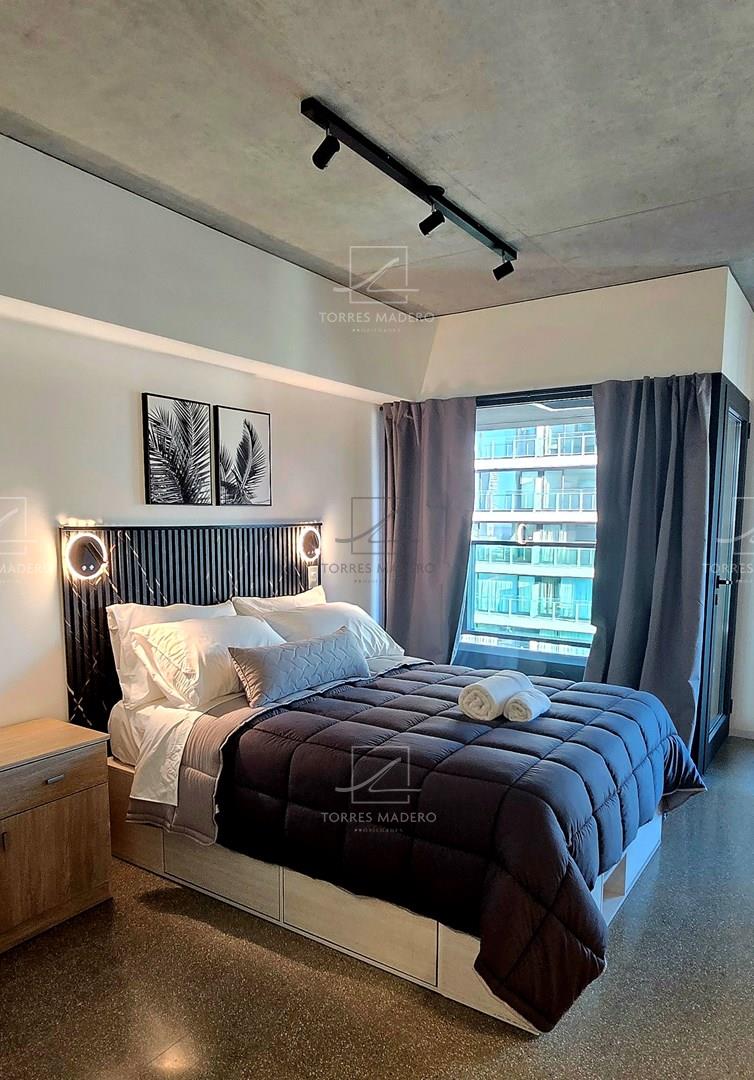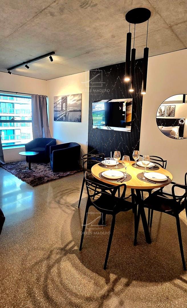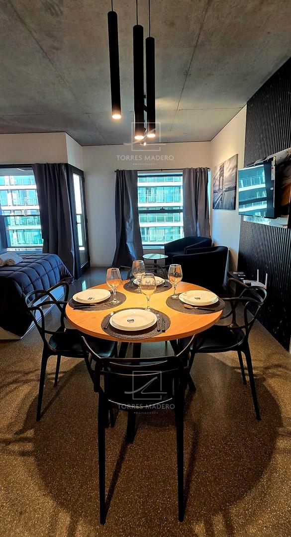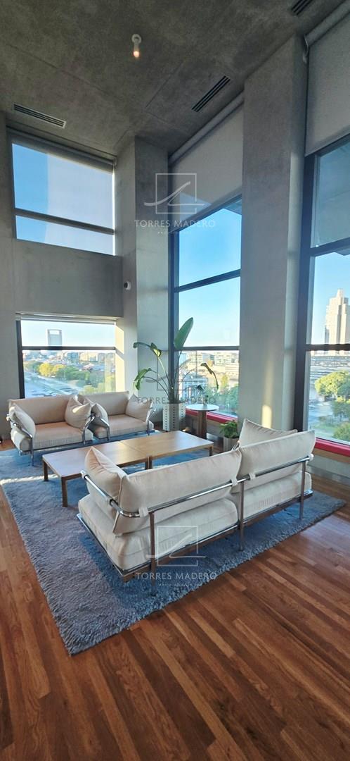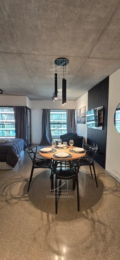 Impactante departamento de 1 Ambientes en Alquiler en Puerto Madero totalmente equipado y amoblado con muy gusto y excelente nivel. Importante edificio frente al Paseo del Bajo y con vistas únicas de Buenos Aires, con los mejores centros de estudio en un radio de 2 kilómetros. A diez cuadras de la Reserva Ecológica de Puerto Madero, Cerca de nuestra historia, a 750 metros del Puente de la Mujer y bellas vistas al Río de la Plata y a la Ciudad. Opcional cochera: USS 100. Amenities exclusivos: Coffee Resto Bar, Gallery Art, Gym, Yoga, Running Track, Coworking Área, Library, Game Lounge, Laundry Área, Swimming Pool, Rooftop. La torre HUERGO 475, diseñada por el estudio Adamo Faiden, responde con su morfología a las características del entorno. Mediante una serie de desplazamientos horizontales, logra capturar las mejores vistas del río y la ciudad. * Se requiere identificación para Ingresar al edificio* * Todas las medidas enunciadas son meramente orientativas, las medidas exactas serán las que se expresen en el respectivo título de propiedad de cada inmueble. Todas las fotos, imágenes y videos son meramente ilustrativos y no contractuales. Los precios enunciados son meramente orientativos y no contractuales.