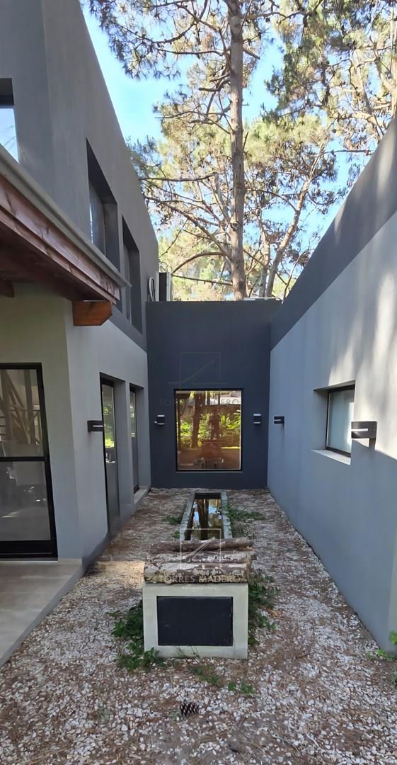 Moderna e impecable casa racionalista con un importante jardín verde y un logrado jardín japonés central. Inmueble muy luminoso a 300 mts del mar, cercano al centro comercia de Costa del Este y DENTRO DEL BARRIO LA RESERVA. Amplio terreno de casi 500mts2 rodeado de arboles con una excelente ubicación y orientación. Hall de entrada, living y comedor con hermosa vista verde, luminosidad y comodidad . Cocina con impecables terminaciones y mobiliario, la misma cuenta con salida a una cómoda galería cubierta con amplia parrilla y a los jardines. Dormitorio en suite con vestidor y amplios ventanales. Dormitorio secundario con un baño completo, Escritorio con balcón al living comedor o futuro espacio para un tercer dormitorio. Toda la planta con piso de porcelanato. Baños con terminaciones de calidad superior. Cochera cubierta. Aires acondicionados frio-calor en todos los ambientes y salamandra en el living comedor. Terreno parquizado con impecable jardín y gran jacuzzi. Costa de Este es conocida el Bosque de la Costa, es una de las localidades mas tranquilas, exclusivas y natural de la zona, combina amplias y serenas playas de arena fina, con un entorno forestal de pinos, eucaliptos y acacias único y cuidadosamente resguardado con el objetivo de mantener una armonía natural. La arquitectura del lugar se integra armoniosamente al bosque y cuenta con un pintoresco centro comercial con proveedurías, cafés y e interesantes propuestas gastronómicas. *Todas las medidas enunciadas son meramente orientativas, las medidas exactas serán las que se expresen en el respectivo título de propiedad de cada inmueble. Todas las fotos, imágenes y videos son meramente ilustrativos y no contractuales. Los precios enunciados son meramente orientativos y no contractuales. Esta publicidad respeta lo establecido en el art. 4 y 8 de la ley 24.240 *