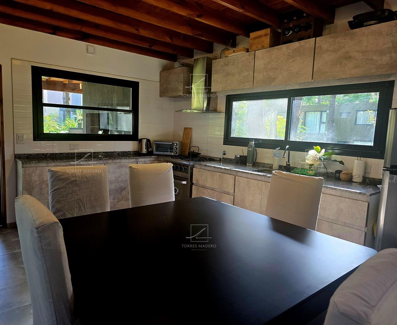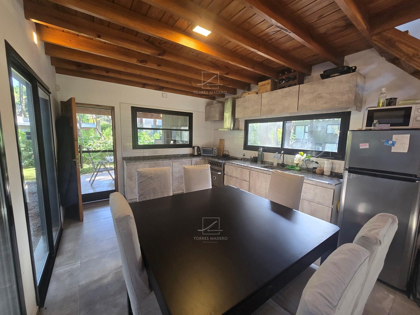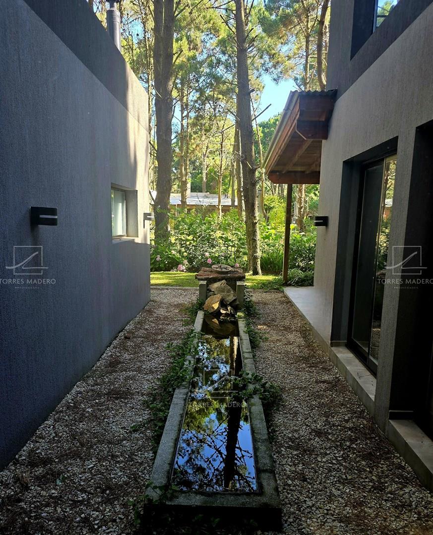 Moderna e impecable casa racionalista con un importante jardín verde y un logrado jardín japonés central. Inmueble muy luminoso a 300 mts del mar, cercano al centro comercia de Costa del Este y DENTRO DEL BARRIO LA RESERVA. Amplio terreno de casi 500mts2 rodeado de arboles con una excelente ubicación y orientación. Hall de entrada, living y comedor con hermosa vista verde, luminosidad y comodidad . Cocina con impecables terminaciones y mobiliario, la misma cuenta con salida a una cómoda galería cubierta con amplia parrilla y a los jardines. Dormitorio en suite con vestidor y amplios ventanales. Dormitorio secundario con un baño completo, Escritorio con balcón al living comedor o futuro espacio para un tercer dormitorio. Toda la planta con piso de porcelanato. Baños con terminaciones de calidad superior. Cochera cubierta para un auto y Cochera descubierta para dos autos. Aires acondicionados frio-calor en todos los ambientes y salamandra en el living comedor. Terreno parquizado con impecable jardín y gran jacuzzi. Costa de Este es conocida el Bosque de la Costa, es una de las localidades mas tranquilas, exclusivas y natural de la zona, combina amplias y serenas playas de arena fina, con un entorno forestal de pinos, eucaliptos y acacias único y cuidadosamente resguardado con el objetivo de mantener una armonía natural. La arquitectura del lugar se integra armoniosamente al bosque y cuenta con un pintoresco centro comercial con proveedurías, cafés y e interesantes propuestas gastronómicas. *Todas las medidas enunciadas son meramente orientativas, las medidas exactas serán las que se expresen en el respectivo título de propiedad de cada inmueble. Todas las fotos, imágenes y videos son meramente ilustrativos y no contractuales. Los precios enunciados son meramente orientativos y no contractuales. Esta publicidad respeta lo establecido en el art. 4 y 8 de la ley 24.240 *