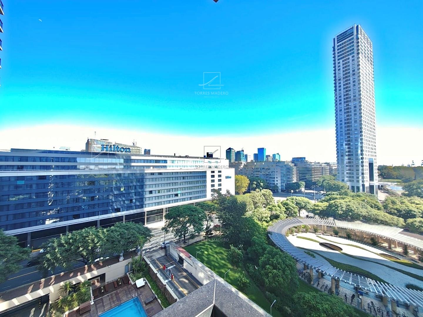 OPORTUNIDAD !! En las EXCLUSIVAS Torres River View encontramos esta oportunidad. Este departamento super luminoso de 2 dormitorios mirando al Norte es sin dudas una de las mejores opciones en Puerto Madero para quien busca 3 ambientes en casi 100 m2. Muchas superficie vidriada en living comedor hacen que se cree una atmósfera muy agradable para lo cotidiano. Amplia cocina integrada con barra desayunadora y mucho espacio de guardado. EQUIPO DE AIRE ACONDICIONADO MULTISPLIT NUEVO A ESTRENAR. La suite principal incluye un muy buen vestidor y el segundo dormitorio tiene placard en el pasillo. Acceso por palier privado con clave digital y segundo acceso de servicio por cocina. TORRES RIVER VIEW. Ubicadas sobre Juana Manso al 700, justo en frente del Hotel Hilton y al lado del edificio de YPF, este complejo fue uno de los primeros en construirse en Puerto Madero. Se compone de 2 torres de 30 pisos cada una, con excelentes vistas tanto al rio como a la ciudad. Posee piscina climatizada, SUM con cine, gran gimnasio, Sala de Masajes, cocheras en subsuelo y de cortesía en PB, seguridad 24 hs y mucho mas. Todas las medidas enunciadas son meramente orientativas, las medidas exactas serán las que se expresen en el respectivo título de propiedad de cada inmueble. Todas las fotos, imágenes y videos son meramente ilustrativos y no contractuales. Los precios enunciados son meramente orientativos y no contractuales. Los metros aquí publicados son aproximados. Los reales surgen de la escritura. Esta publicidad respeta lo establecido en el art. 4 y 8 de la ley 24.240 *